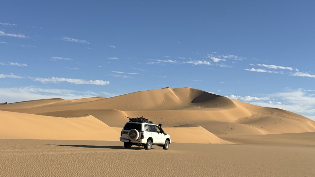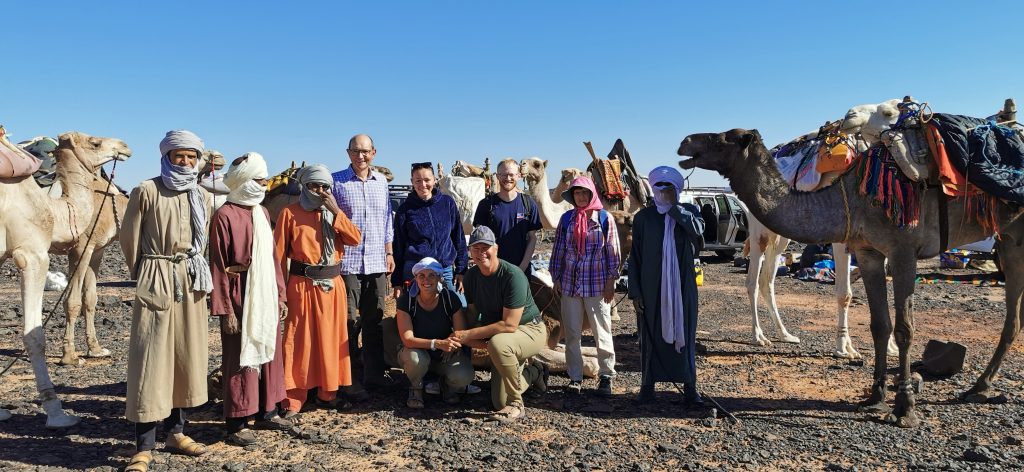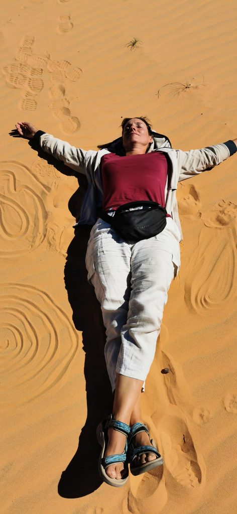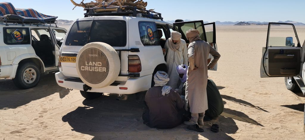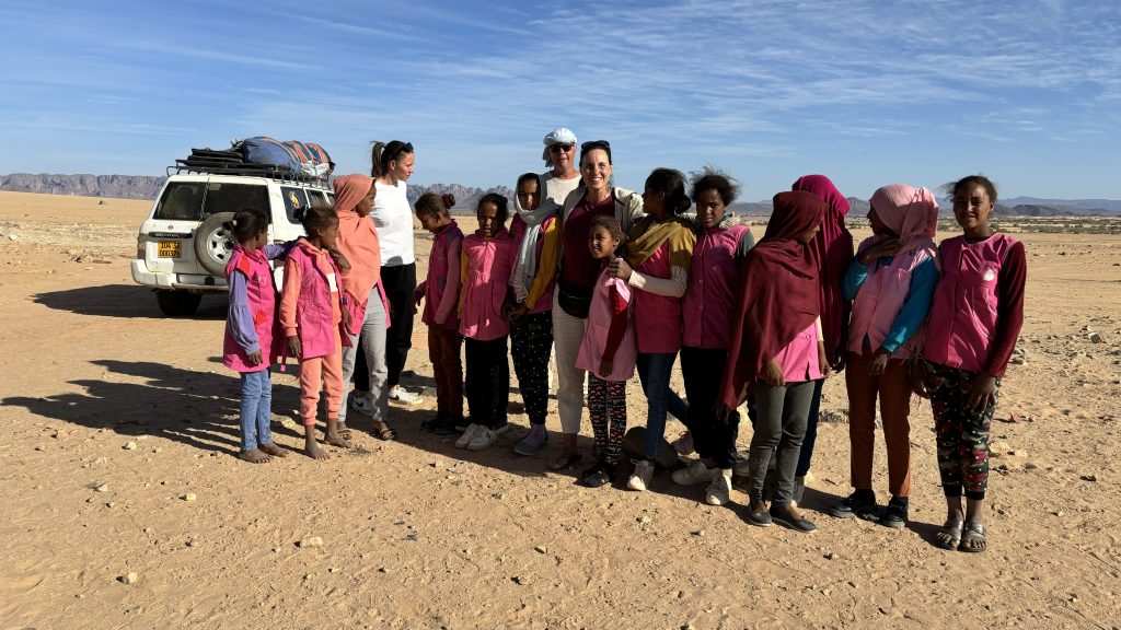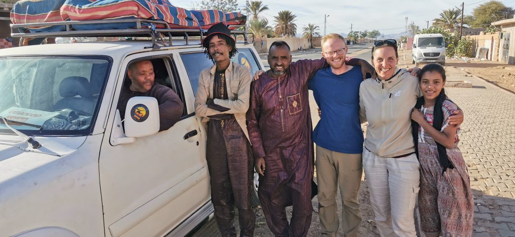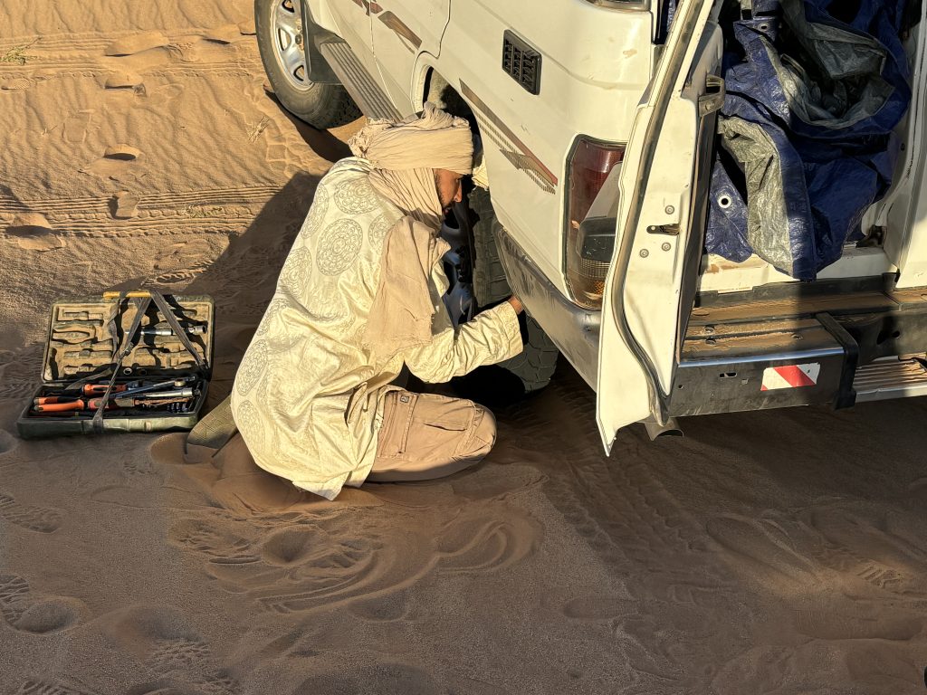 In unserer Lieblingsumgebung, der WüsteAuch an Marias Geburtstag wurde gedacht ❤️Unser Wander-Team: Bendi (Ranger), Shibani, Mohammed, Salah (Dromedar Führer), Mohammed (der beste Koch) und Salah unser Guide, der uns richtig ans Herz gewachsen ist.Zeit für ein Gruppenbild mit unseren Fahrern (Shalil, Mohammed und Mulai), Mohammed dem Koch und Salah unserem GuideBesuch von einem.FreundDas ist ein Moula Moula in Tamaschek, der Tuareg Sprache. Aus welchem Grund auch immer (vermutlich weil er ein Glücksbringer ist ) haben alle Tuareg Maria „Moula Moula“ genannt 🤗Relaxen im SandSchakalspurenReifenpannen gab es jede MengeLöcher im Reifen werden zugeschraubt, klar, macht doch jeder so…..Einmal haben wir Wasser an einer Schule geholt. Die Kinder wollten unbedingt ein Foto mit uns