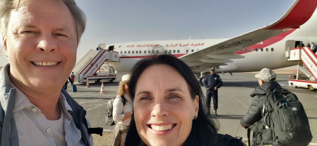 30.10.2024: So, die Anreise hat begonnen. Wir sind heute nach Frankfurt gefahren. Dort schlafen wir direkt neben dam Flughafen, damit wir morgen nicht so früh aufstehen müssen. Wird zwar immernoch 6:30Uhr sein, aber besser wie 3 Uhr und dann nach Frankfurt fahren 😇1.11.2024: Gut geschlafen….dann kann es ja los gehenWarten auf den Check Inn mit einem Geburtstagskuchen für Jo❤️Los geht’s zuerst nach Rom….….In Rom warten wir auf unseren Anschluß nach Algier ….In Algier angekommen, warten wir auf den Weiterflug navh DjanetDauert wohl noch länger, dann setzen wir uns halt auf den Boden, denn hier gibt es nicht genug Stühle….Schade eigentlich2.11.2024: tja, hat alles etwas länger gedauert wie geplant…..als hätten wir es nicht gewusst. Jetzt sitzen wir mit 2 ½ Stunden Verspätung im Flugzeug nach Djanet…..das wird eine kurze Nacht…..Update, 2 Uhr und wir sind immer noch, sind noch nicht gestartet….Jetzt sind wir in Djanet gelandet.Mal schauen wie lange das hier dauert bis wir ins Auto zum Hotel springen…..So, jetzt ist es 6 Uhr, wir sind am Hotel angekommen. Geschlafen wird nicht, nur geduscht und gefrühstückt , denn um 7 Uhr geht es wieder Richtung Flughafen um nach Illizi zu fliegenJetzt geht’s los nach Illizi. Ab da wird es dann mit Reisebericht schwierig bis unmöglich 😱